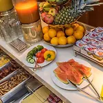 Pletfrit hotel med en fantastisk beliggenhed og meget venlig personale. Velindrettede værelse, ekstraordinært behagelig seng, forbløffende morgenmad! Der var Mykonos Sendling, max 5 minutters gang til, elskede deres mad. Servicen var god, pænt restaurant på stedet❤